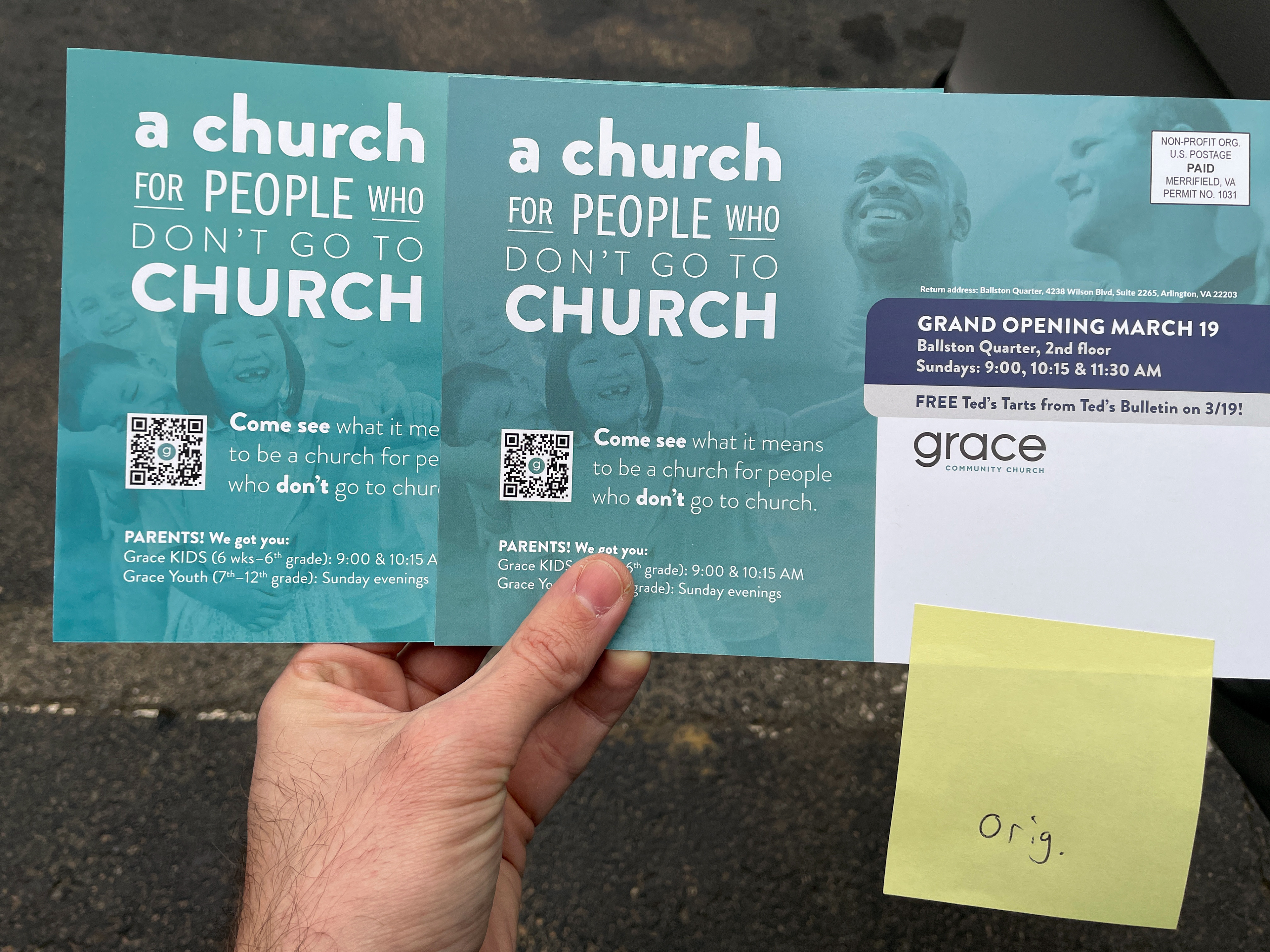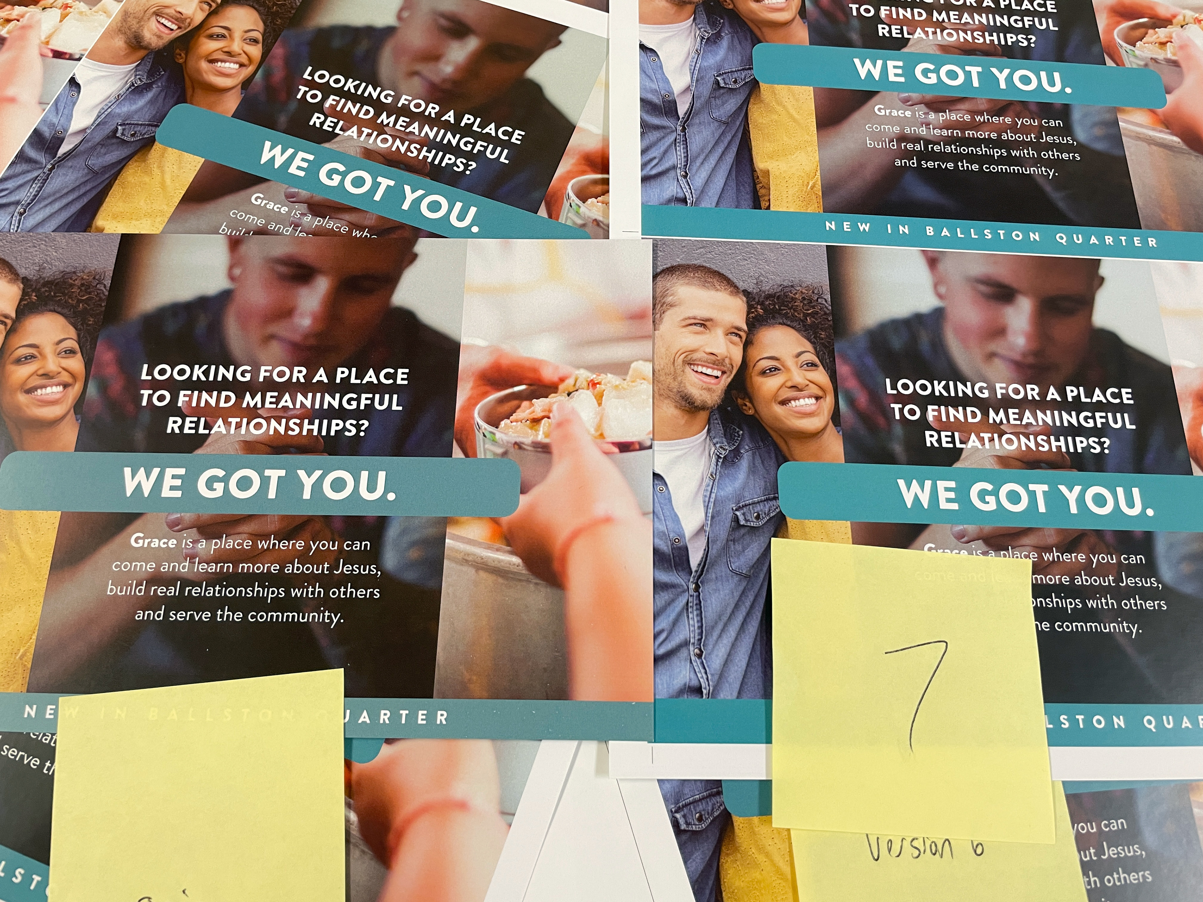 It was important for Grace to connect with their surrounding community, so we opted to send a targeted direct mailer to 34,000 households in Ballston. On a tight deadline, I worked closely at our printer's shop in Sterling, VA to get Grace's brand colors correct.